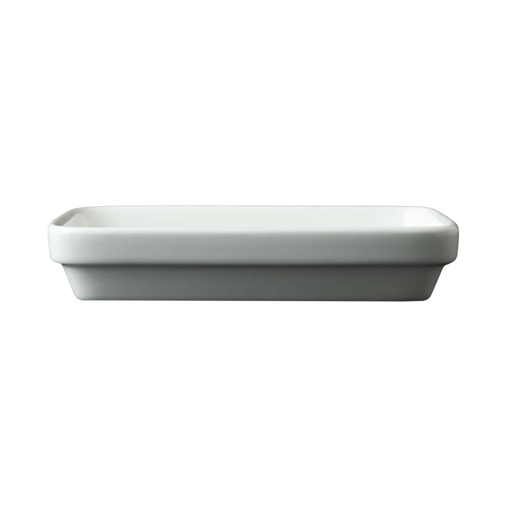 La pirofila rettangolare Desco, misura 18 x 11 x 3 cm, è realizzata in porcellana alluminosa completamente bianca, resistente a urti e a utilizzi intensivi in cucina professionale. Fondo piatto per mantenere a lungo la temperatura degli alimenti e per l'utilizzo su superfici radianti. Impilabile per garantire il massimo risparmio di spazio, perfetta per cotture in forno tradizionale o microonde e per la presentazione diretta in tavola. Facile da lavare, ideale per ristorazione e buffet moderni, assicurando igiene, durata e stile essenziale designed in Italy.