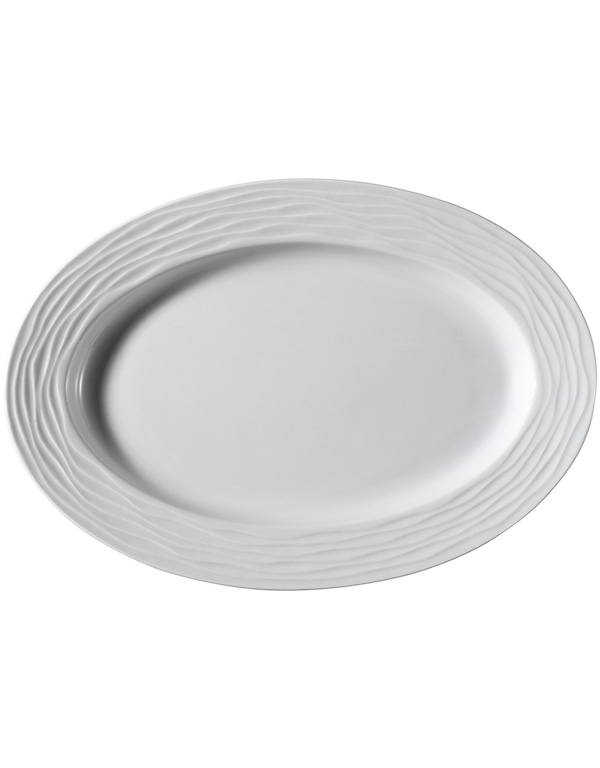 Questo piatto ovale da 35 cm, della collezione Marina, è la scelta perfetta per servire portate abbondanti, buffet e pesce in ambienti Horeca e domestici. Realizzato in fine porcelain feldspatica, vanta un bordo decorato a rilievo che evoca il movimento delle onde, donando eleganza moderna a ogni presentazione. La struttura ampia e resistente assicura massima praticità e brillantezza anche dopo molti lavaggi. Impilabile e funzionale, porta in tavola l'armonia tra tradizione veneziana e design innovativo.