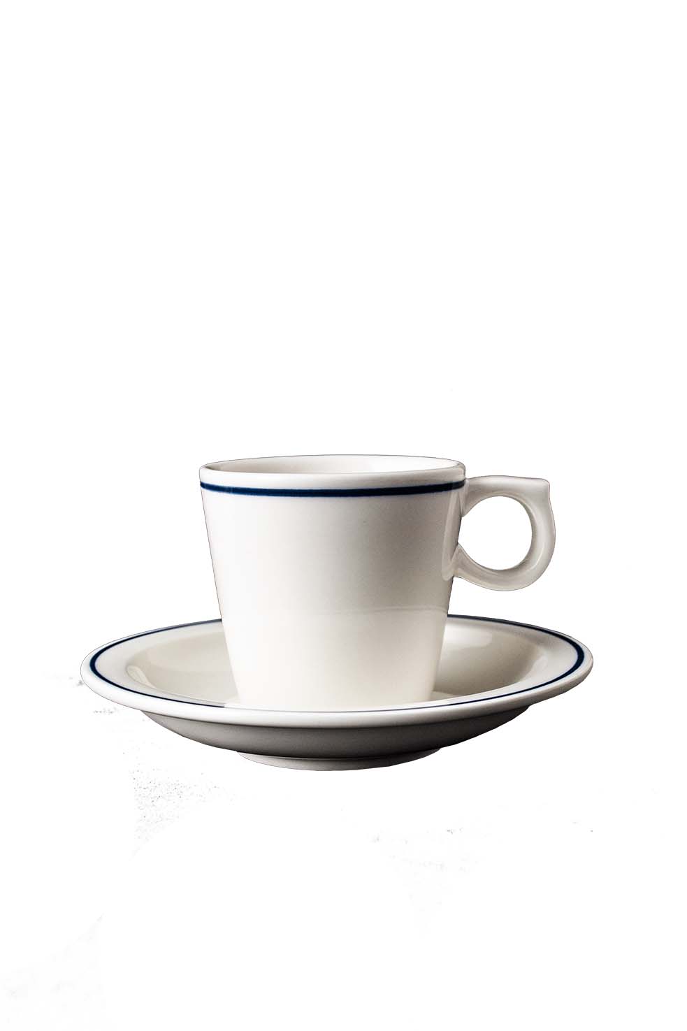 Tazzina caffè Desco da 110 cc con piattino da 12,5 cm, in porcellana alluminosa con raffinato decoro filo blu. Pensata per ristorazione e uso intensivo, garantisce elevata resistenza a urti e lavaggi industriali. Il fondo piatto mantiene il calore dell'espresso, mentre il manico ergonomico e il design impilabile assicurano massima funzionalità e risparmio di spazio. Designed in Italy, perfetta per bar, hotel e servizio professionale: igiene costante e stile contemporaneo in ogni dettaglio.