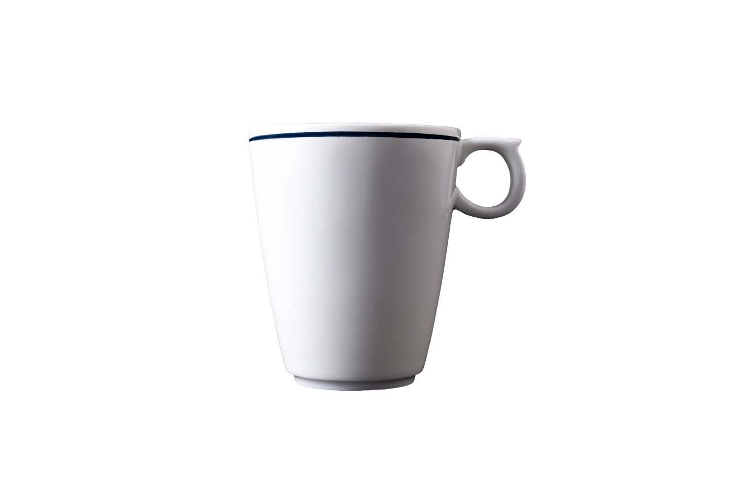 La mug Desco da 9 x 11 cm con raffinata decorazione filo blu è realizzata in porcellana alluminosa ultra resistente, ideale per l'uso in bar, hotel e ristorazione. Il fondo completamente piatto mantiene la temperatura delle bevande calde, mentre il manico ergonomico assicura una presa sicura e stabile anche nel servizio intensivo. Il design conico e impilabile permette di ottimizzare lo spazio senza rinunciare all'eleganza del decoro blu. Facile da lavare anche in lavastoviglie industriale, igiene e praticità sempre garantite.