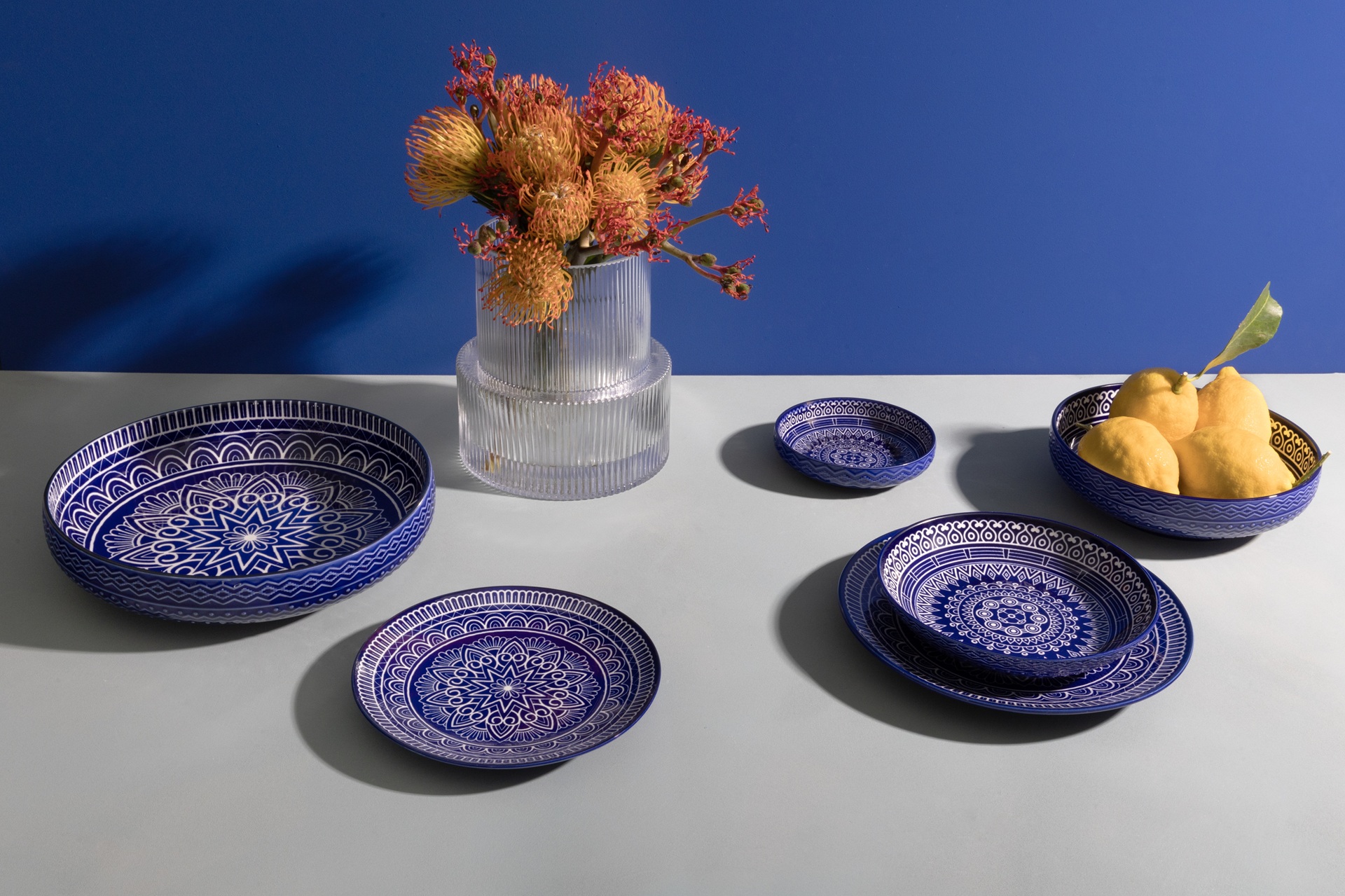 La ciotola grande Sardinia da 31 cm, realizzata in fine porcelain, è una vera protagonista della tavola grazie all'ampio diametro e alla decorazione a motivo mandala blu su bianco ispirata al folklore sardo. Ideale per insalate abbondanti, frutta, portate di gruppo e buffet, il bordo alto consente una presentazione scenografica e funzionale. Resistente, brillante e pensata per uso professionale, offre eleganza mediterranea e solidità a ogni occasione conviviale.